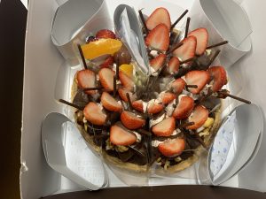 今回はフルーツのタルト・イチゴのチョコレートタルトの2種類をご用意いたしました。