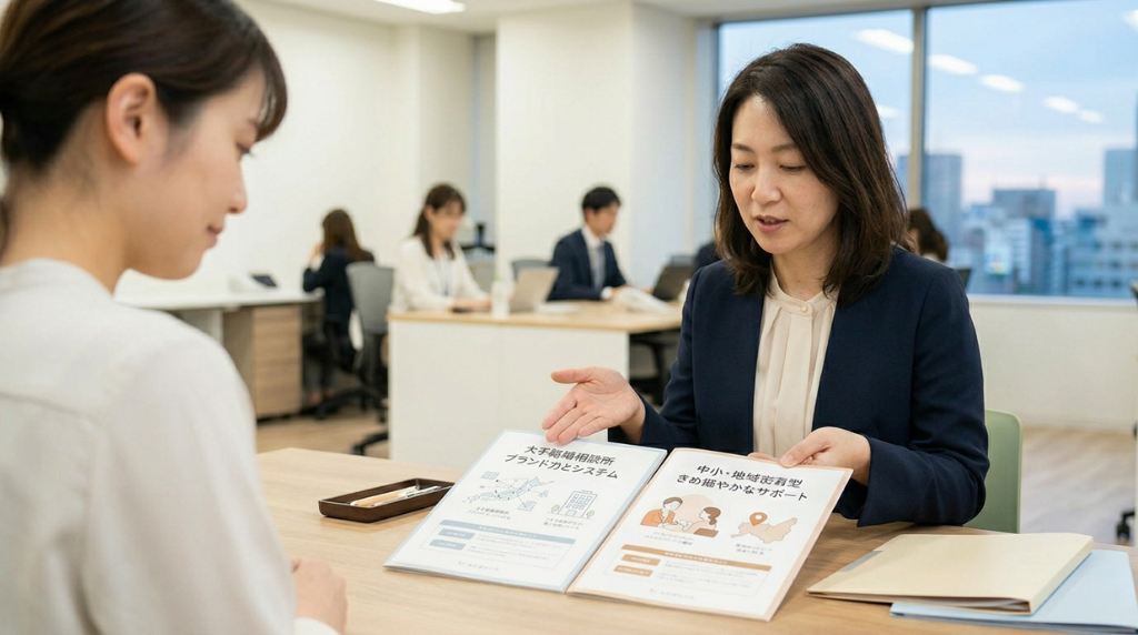大手と地域密着型の違いは、会員の質や数ではなく、カウンセラーのサポート密度と料金構造に表れます。大手には全国規模の広告費や店舗家賃が上乗せされている場合もあるため、「料金の差=サービスの質の差」とは限りません。