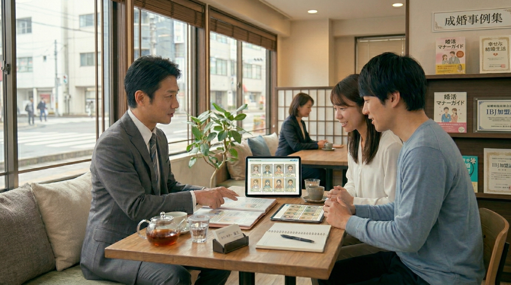 カウンセラー1人あたりの担当会員数、月の面談頻度、連絡手段(対面・電話・メール・LINE対応など)、お見合いの日程調整やお引き合わせの有無、交際中のアドバイス体制。こうした項目を一つひとつ確認していくと、相談所ごとの違いが浮き彫りになります。